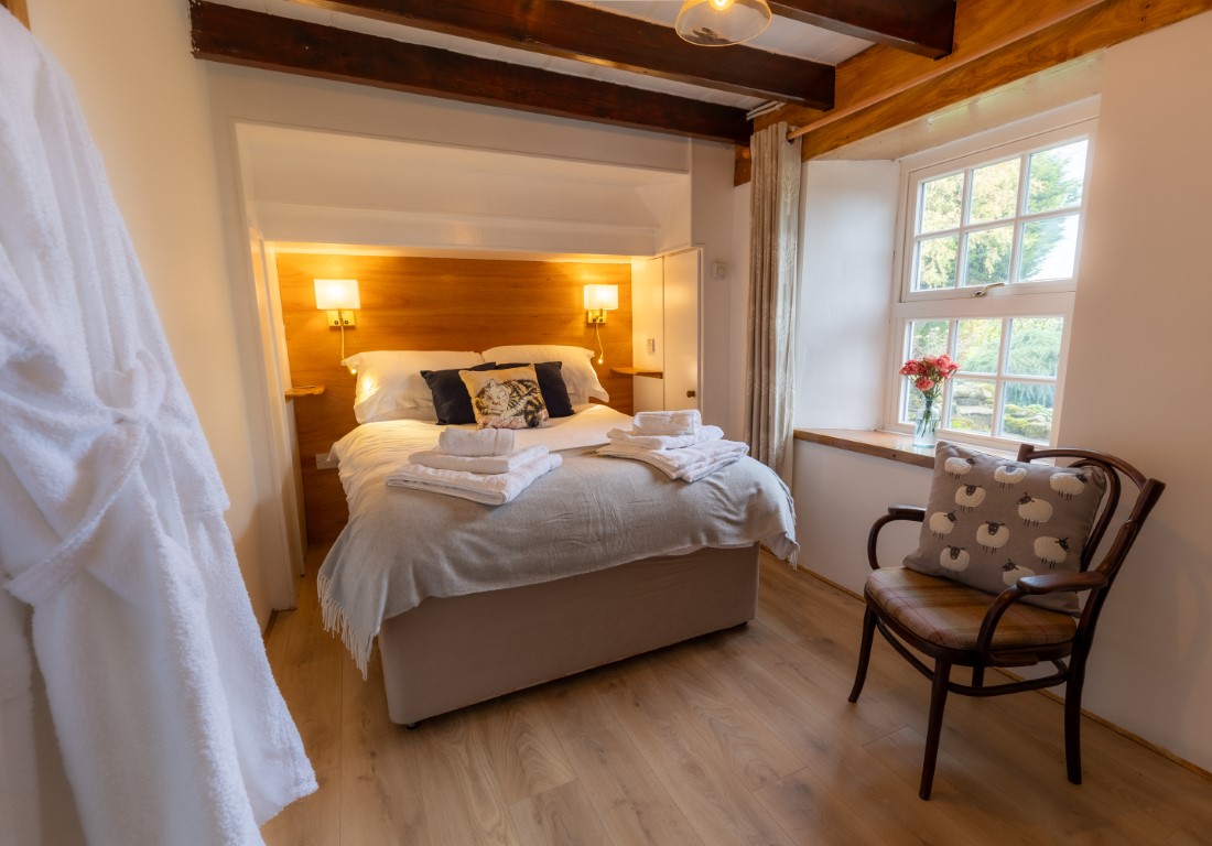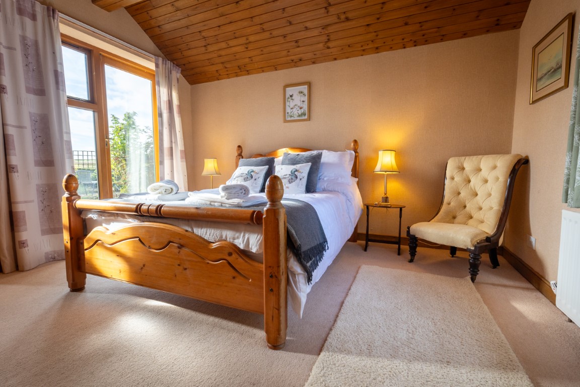 1 x king sized bed with en-suite walk-in shower, basin and WC,