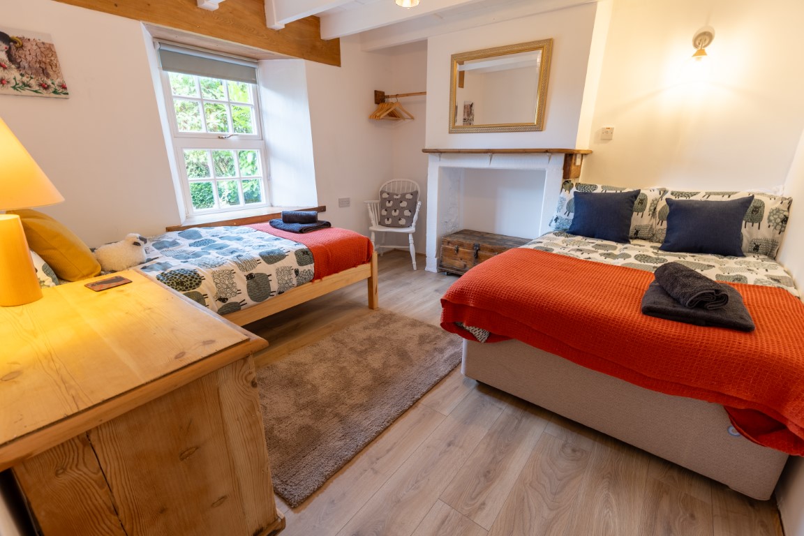 The cottage sleeps up to 6 guests in 3 bedrooms, with 2 bathrooms. Please note we do not allow dogs in the cottage.
